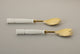 This elegant cake serving set is a harmonious combination of materials and finishes. The handles are handcrafted from exquisite white marble, showcasing the natural beauty and timeless allure of this luxurious stone. The blades of the knife and spatula are made from stainless steel with a brass finish, adding a touch of opulence and refinement to the set.
